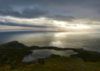 Recognize that place in photo at top pf this blog, and repeated in spot number five pf gallery. Either it’s an infinity pool at some naturistic resort, or it is the inexplicable lakelet just southwest of the parking lot for closeup viewing of Slieve League, sw Donegal. My pic of that spot is in late afternoon, early Sept, full sunny moment. Memorable place, to put it blandly. (My moment there was in 1998, just weeks after the horrific Omagh bombing…)